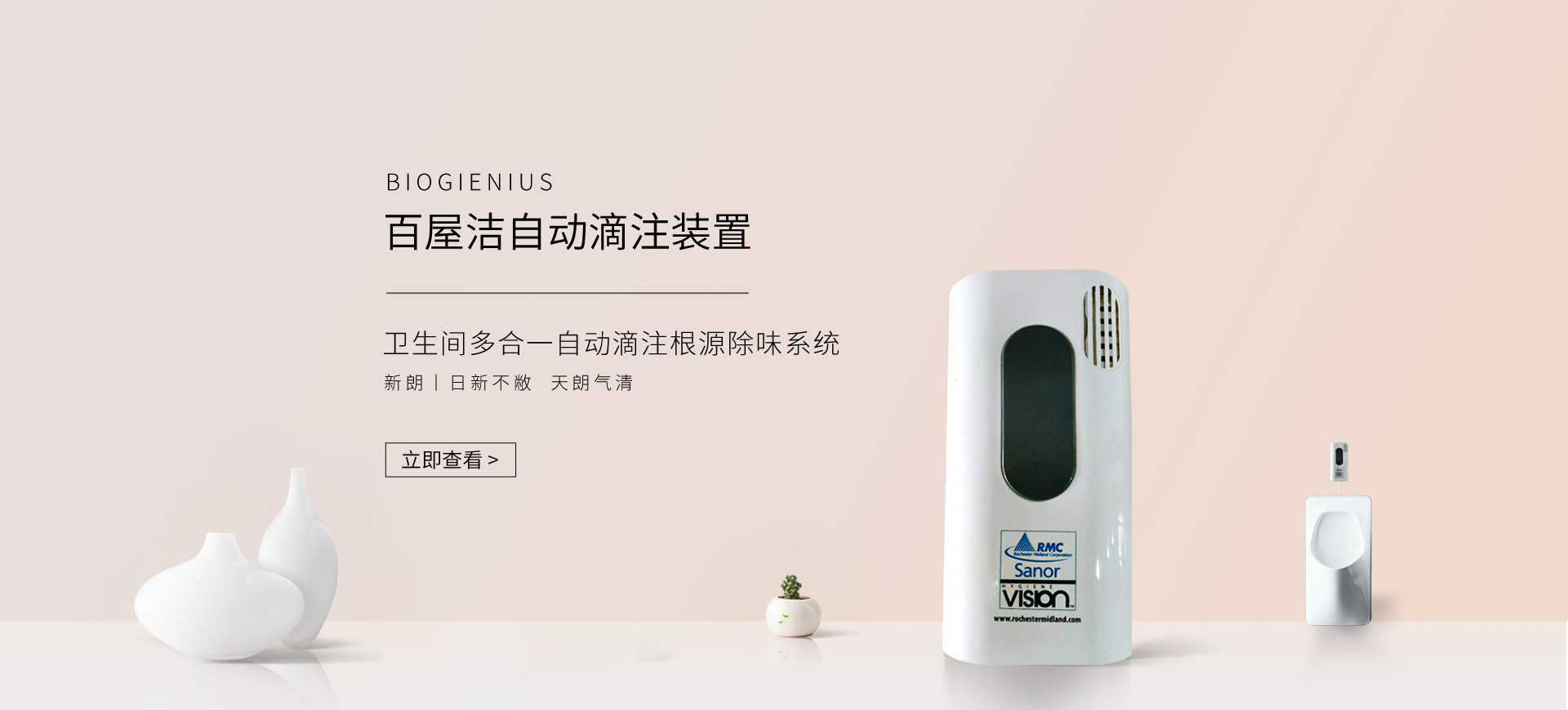 新朗環(huán)境自2015年起與美國具百年歷史的跨國企業(yè)RMC(Rochester Midland Corporation)合作, 進(jìn)口 RMC用于機械制造、交通運輸、航天航空、石油化工、食品禽肉乳制品加工等工業(yè)生產(chǎn)制造行業(yè)的專業(yè)清洗、滅菌系列產(chǎn)品,以及酒店、CBD大廈、學(xué)校(包括幼稚園)、醫(yī)療機構(gòu)、百貨商場、養(yǎng)殖業(yè)、餐飲業(yè)等商用行業(yè)清潔、消毒系列產(chǎn)品,還有專用于各個行業(yè)單位“廁所革命”的公共衛(wèi)生間根源除味第5代SANOR?衛(wèi)生間自動滴管系統(tǒng)、第6代百屋潔SIOGIENIUS?電子控制衛(wèi)生間自動滴注系統(tǒng)等系列產(chǎn)品項目。